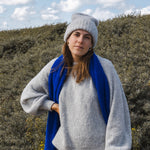 Hij is met de hand gemaakt van ons zachte en hypoallergene Baby alpacagaren, dus hij voelt heerlijk aan, zelfs als je hem direct op je huid draagt. De Basic Billy past zoals verwacht, maar als je liever een oversized stijl hebt, kun je een grotere maat kiezen.