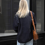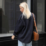 Ellen draagt hier maatje medium voor 177cm en maatje 36/38. Draag het tijdens de koude wintermaanden door over je Fine Filippa of Basic Babette en kies dan voor een maatje groter voor een toffe nonchalante look.