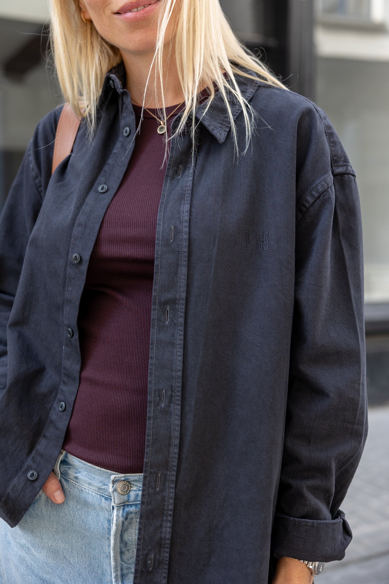 Oversized cotton shirt in Washed Antracite