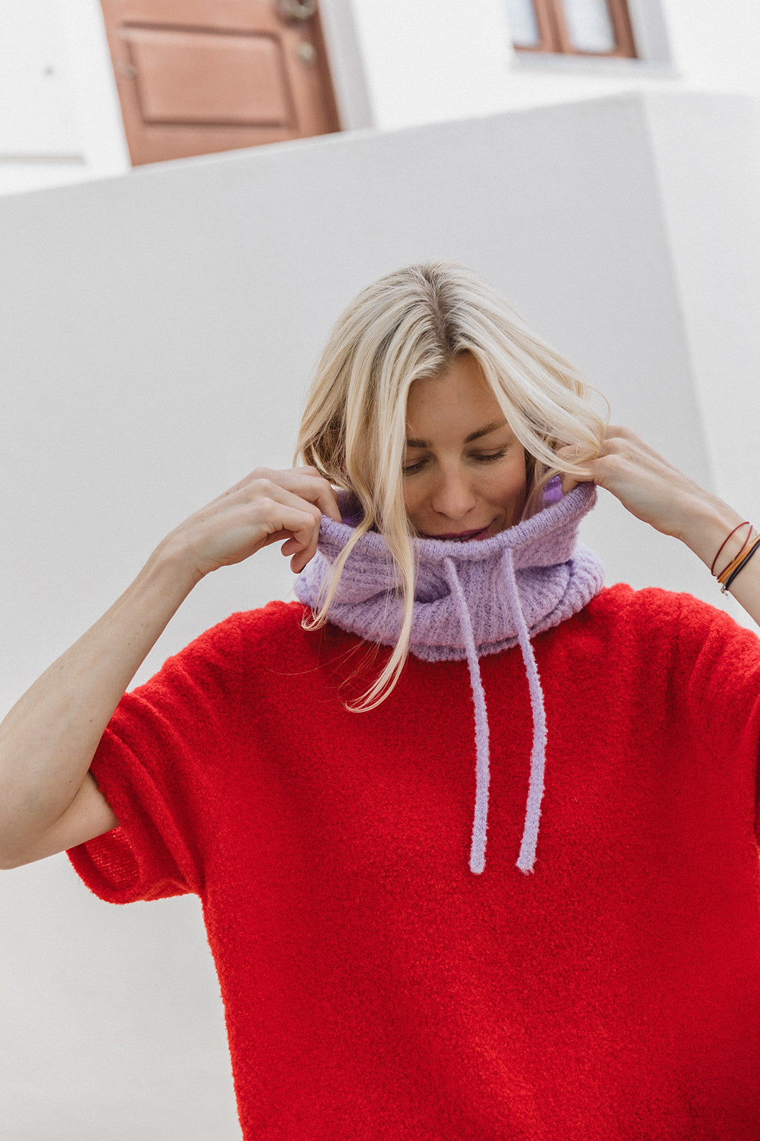 De Bivak Beanie is niet alleen een functioneel, maar ook een veelzijdig accessoire. Hij wordt traditioneel gedragen als bivakmuts, maar Ellen draagt hem ook graag als sjaal of snood en stopt hem in haar jas voor extra warmte en stijl. Zo kan je de Bivak Beanie op verschillende manieren in je winter- & lente outfits stijlen.