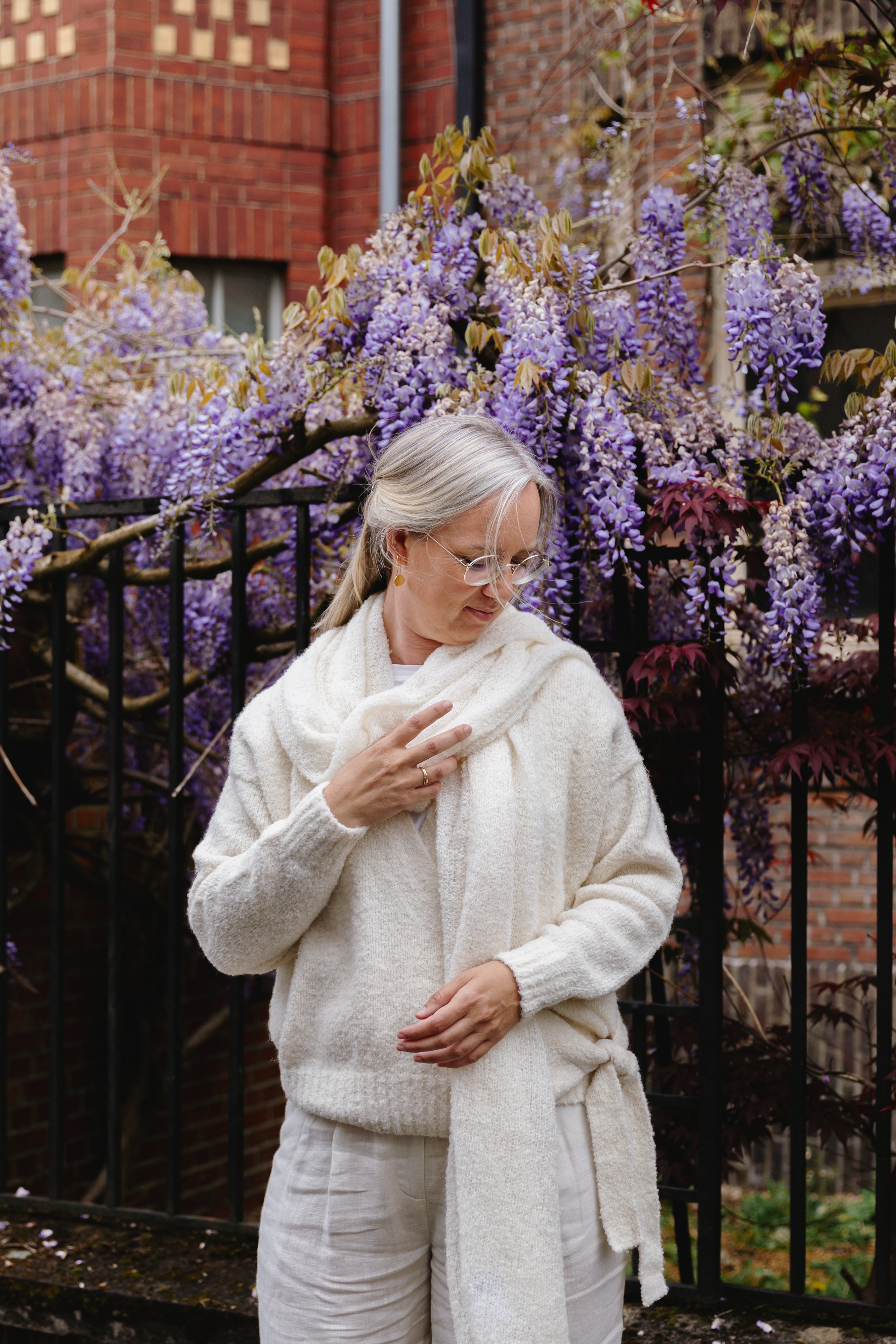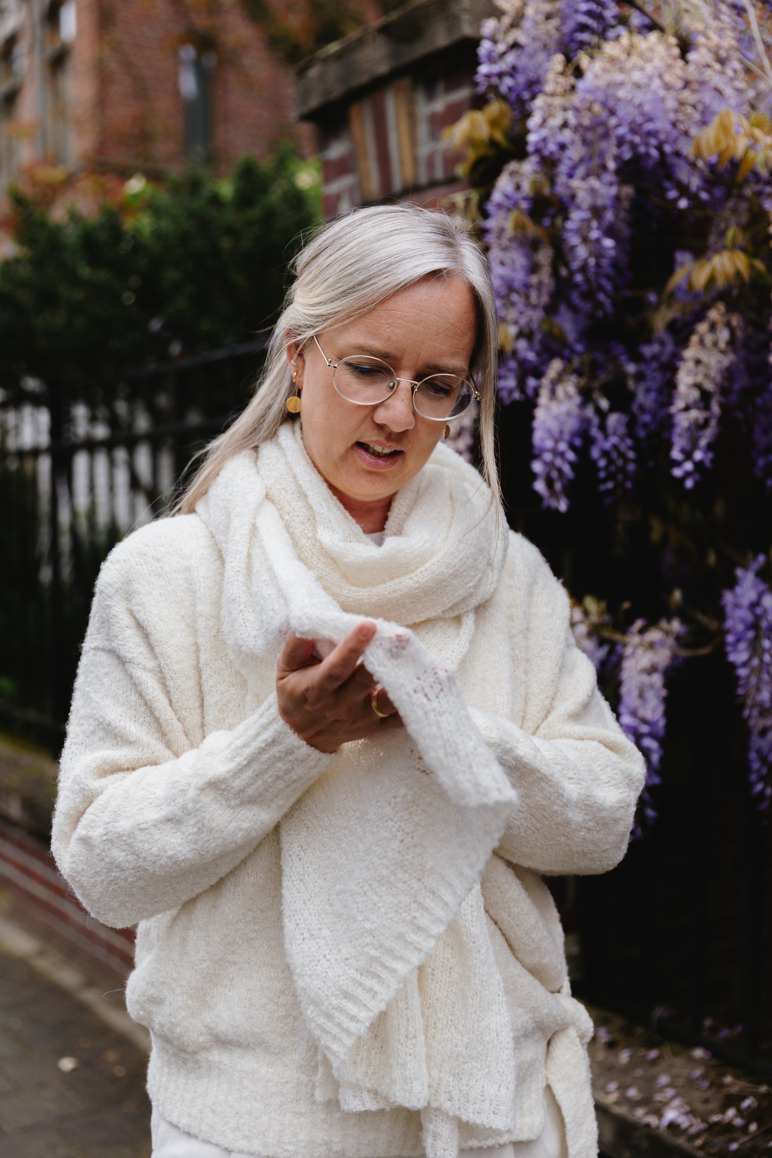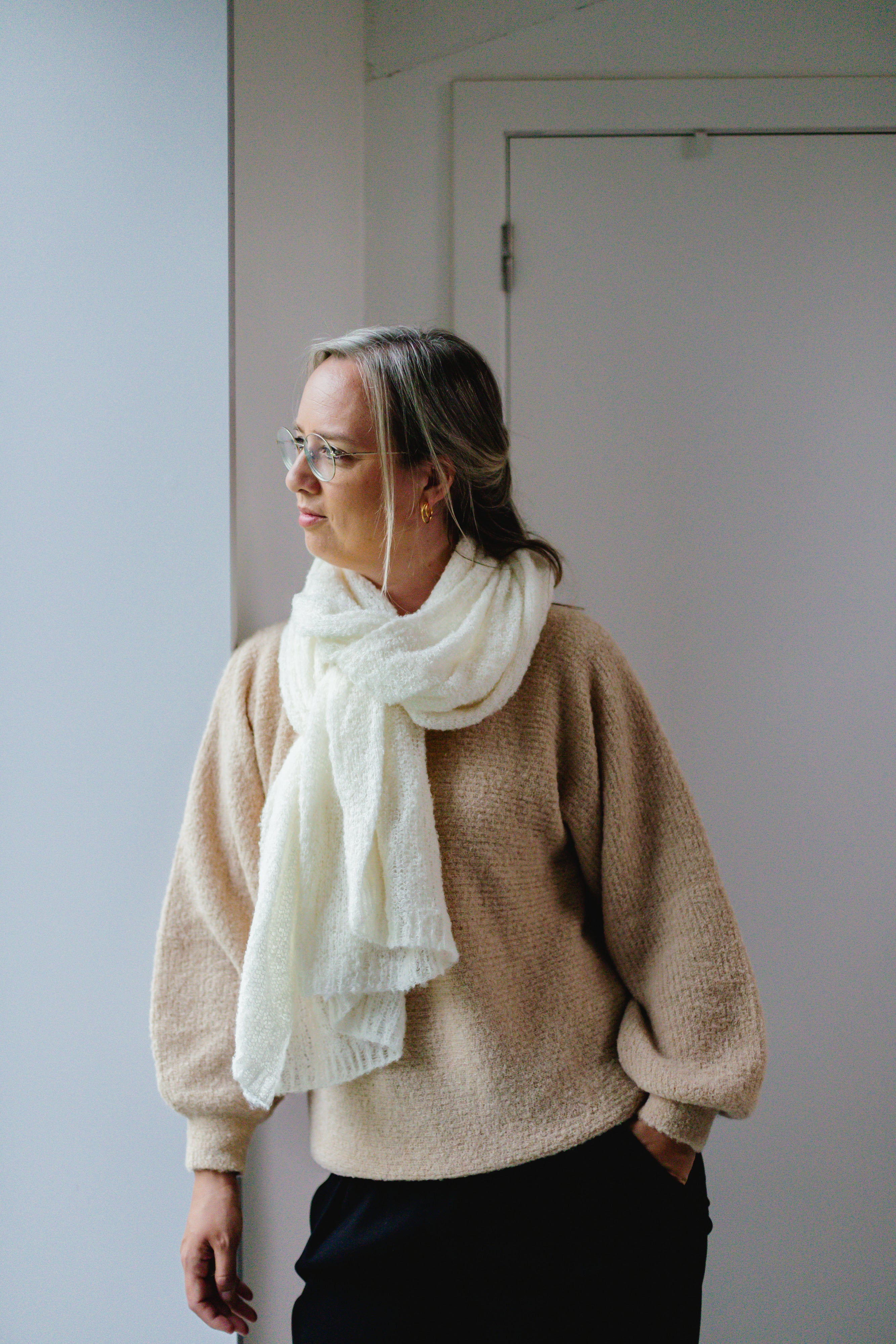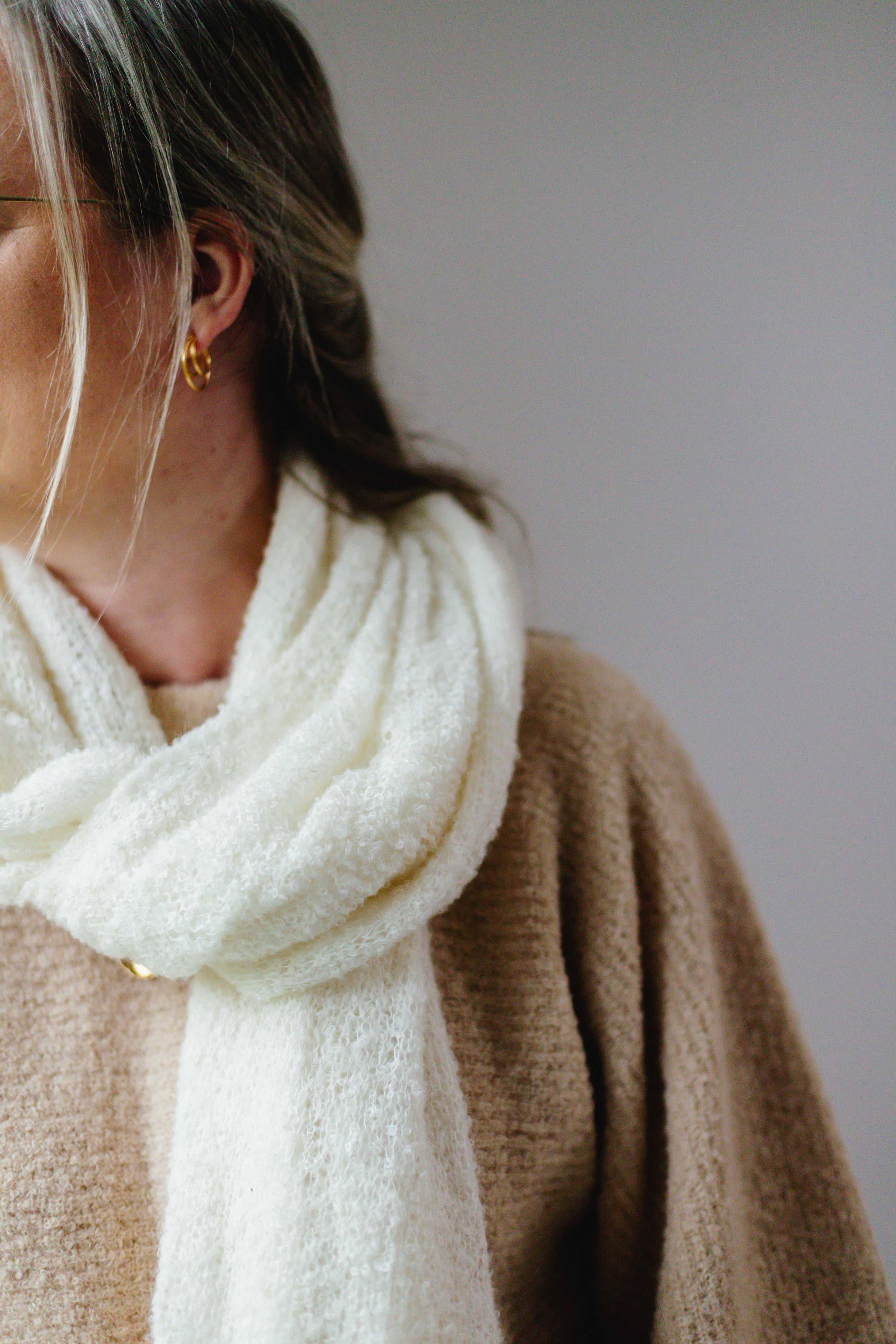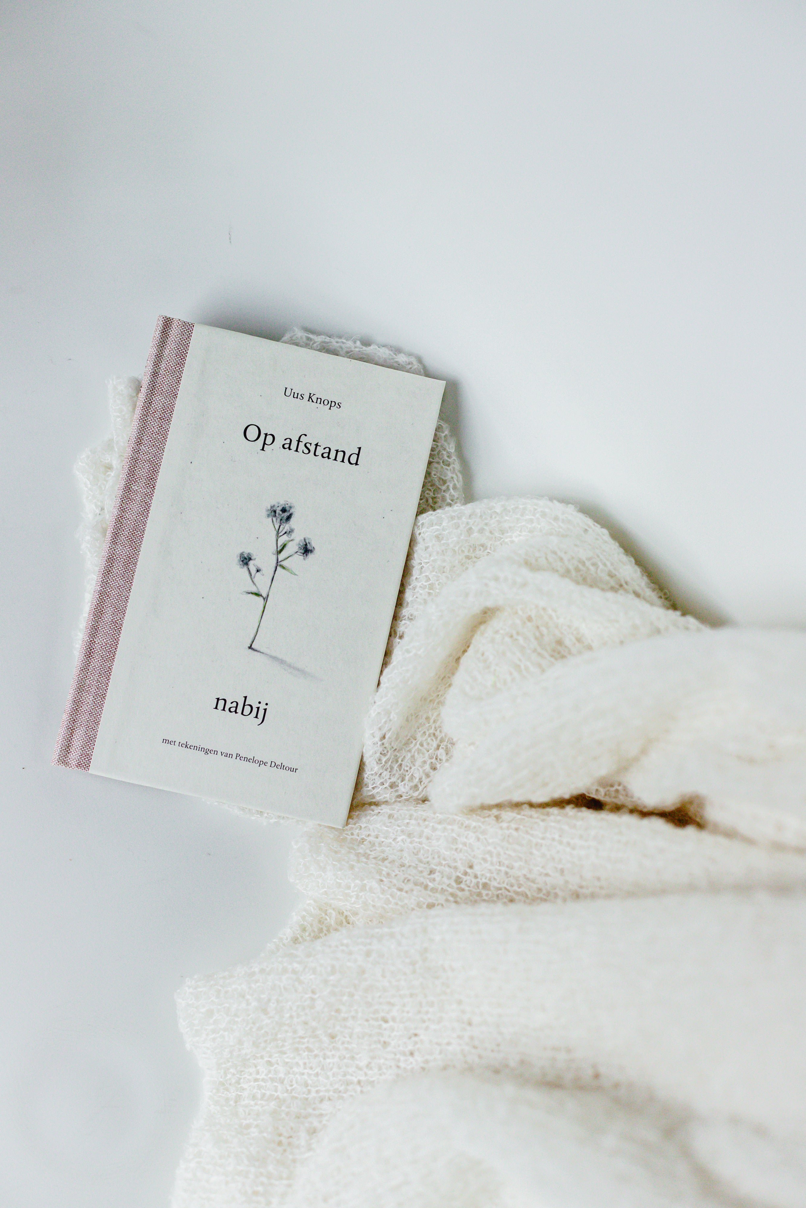 Schenk een dierbare die door een rouwproces gaat een extra laagje warmte in de vorm van een handgebreide ultra lichte Baby alpaca sjaal van LNKnits, de Breezy Betty én extra troostende woorden met het boek van Uus Knops: 'Op Afstand nabij'.