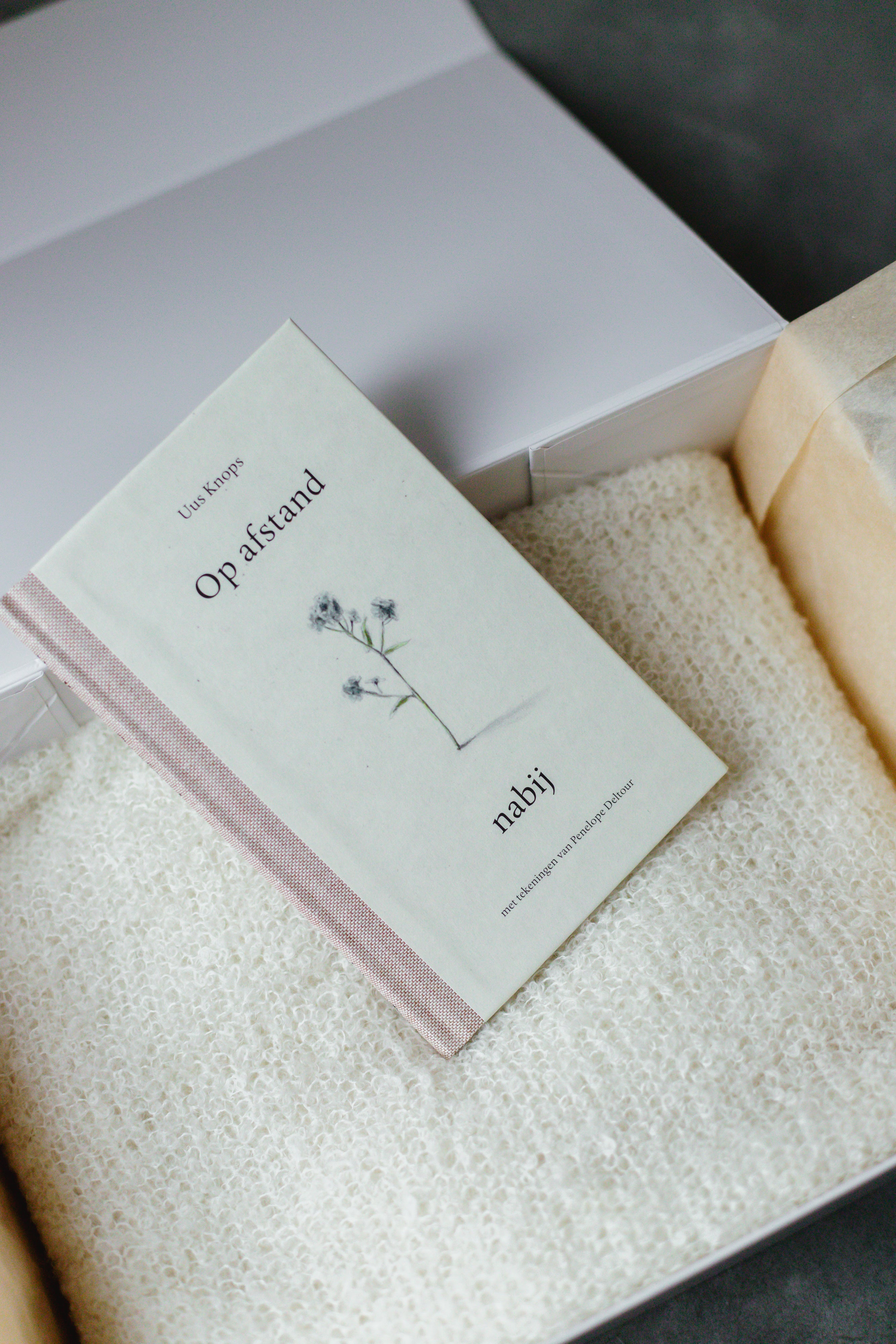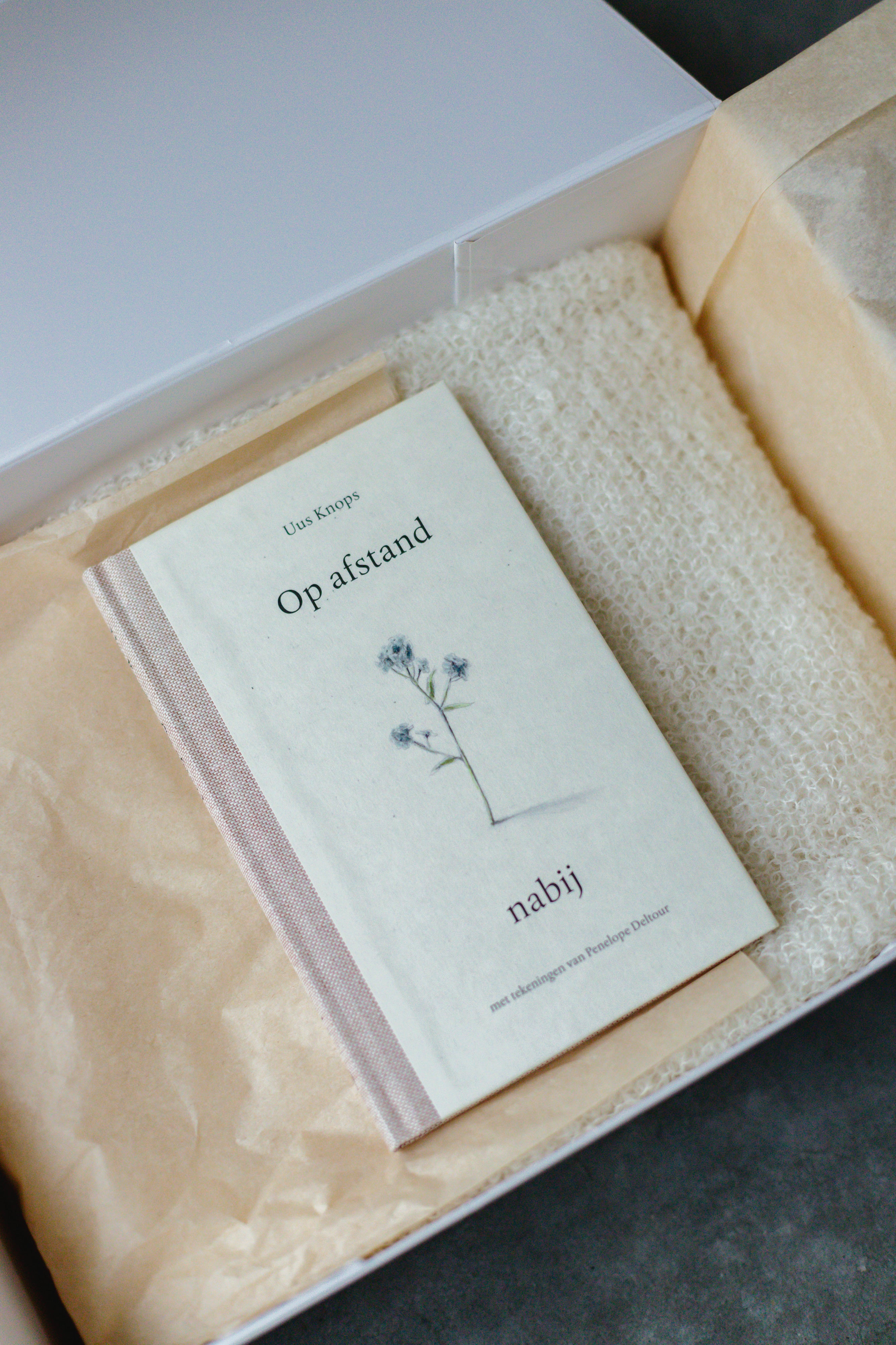 De Breezy Betty sjaal en het boek 'Op Afstand nabij' wordt verstuurd in een mooie doos, die nadien ook nog gebruikt kan worden om kaartjes of andere mooie herinneringen in te bewaren.