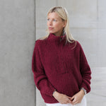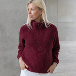 Een traditionele half zip jumper, gebreid in een omgekeerde half cardigan steek voor extra stevigheid en een minimum aan pilling. De hoge kraag met elegante V-vormige schouderdetails maakt van de Clever Cleo ongetwijfeld de blikvanger van dit seizoen.